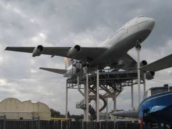 The 747 on display – note the fenced walkway out on the port wing